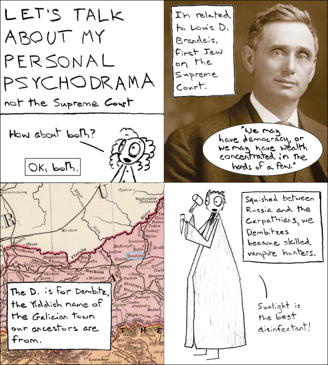 Louis D. Brandeis, Vampire Hunter by eyeteeth on October 1, 2018 at 8:46 am Chapter: AllComics A Teeth married a Dembitz about 150 years ago, and then they came to America. They were my grandfather’s grandparents. └ Tags: everything else